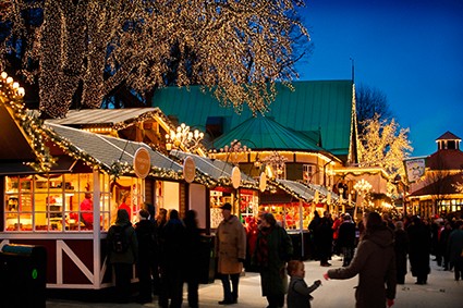 Skansen på Djurgården i Stockholm är i dag världens äldsta friluftsmuseum och skapades för att samla och levandegöra svensk natur och kultur. Redan 1903 anordnades den första julmarknaden i parken och sedan dess har det vuxit till en Sveriges populäraste marknader. I marknadsbodarna på Bollnästorget säljs lokalproducerat hantverk, delikatesser och mat, och ute i parken brukar det anordnas aktiviteter som traditionell dans kring granen och julpyssel.